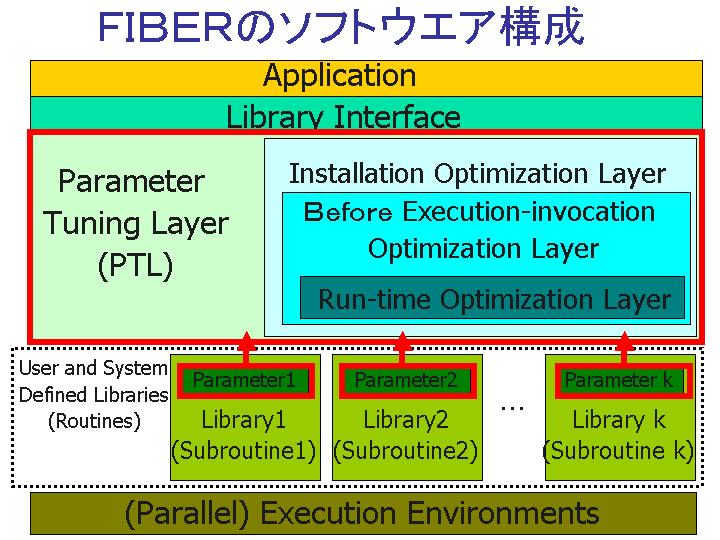 次に、FIBERプロジェクトで開発される新しい自動チューニング方式の FIBERソフトウエアアーキテクチャ について説明します。